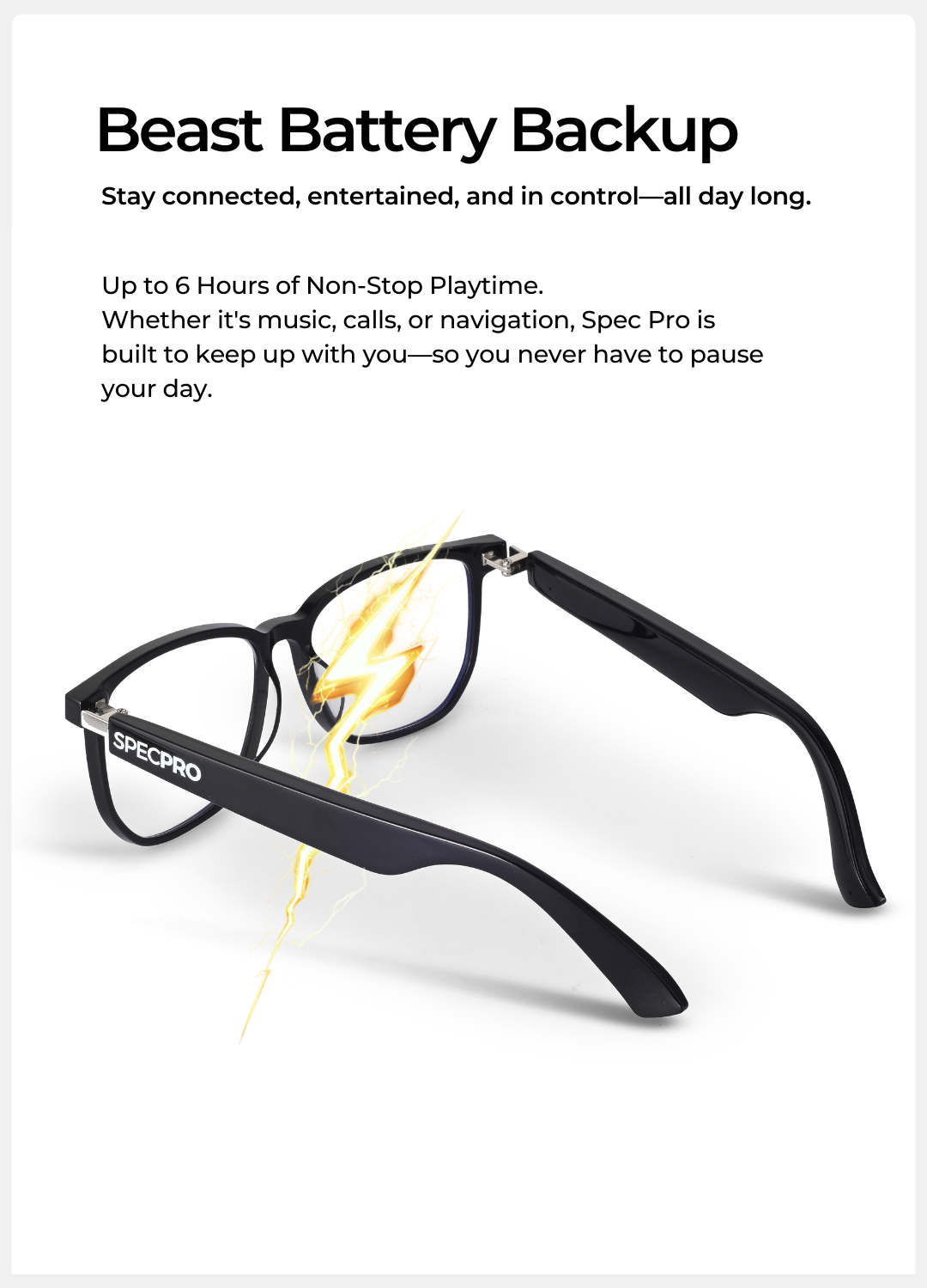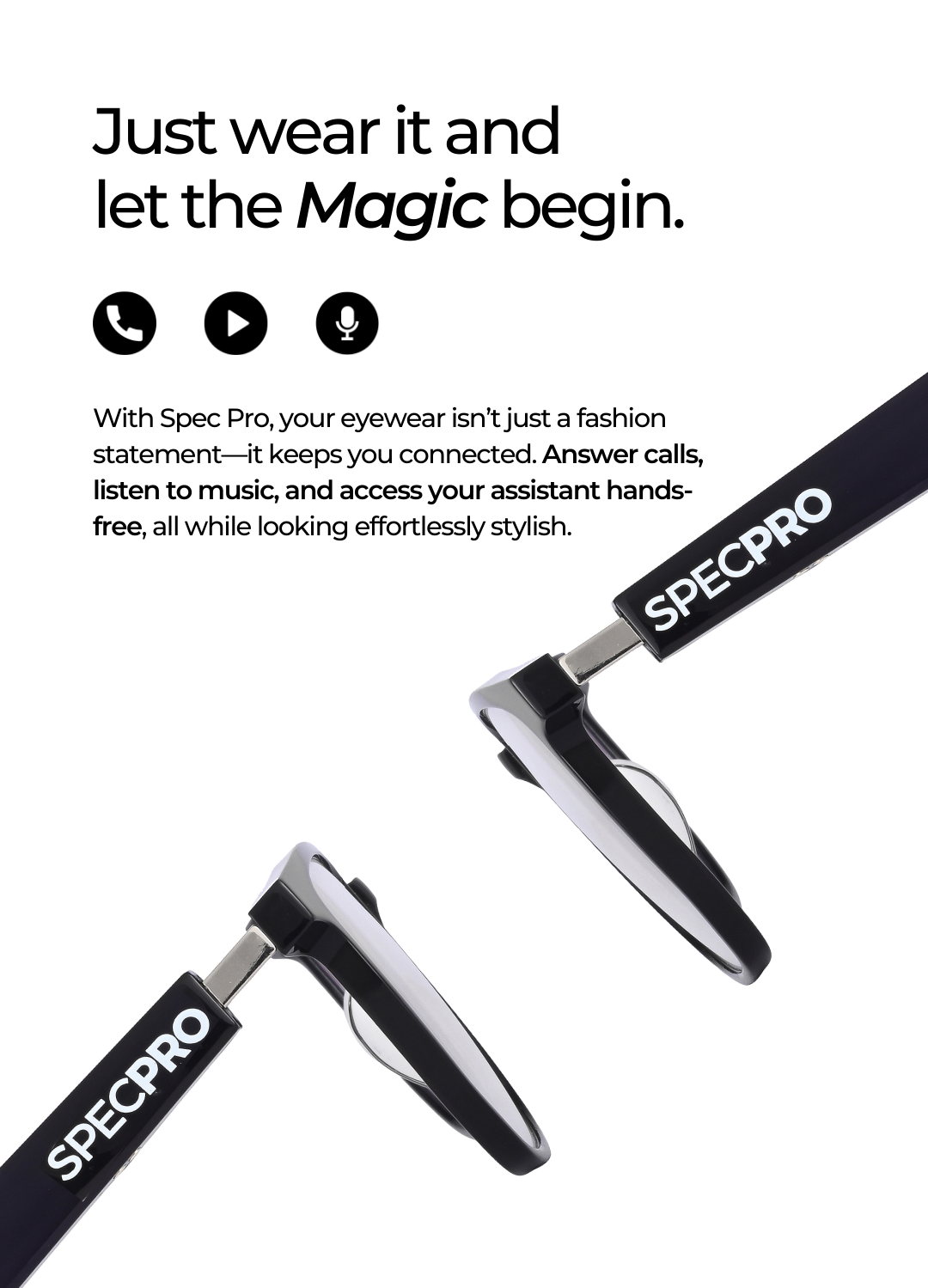 Explore the universe of style with the Cosmic model. Its bold black frame and smooth finish make it a timeless choice for the fashion-forward trendsetter. Experience seamless hands-free calling and music with built-in Bluetooth technology.